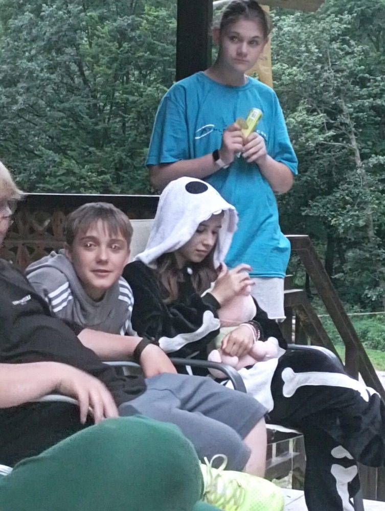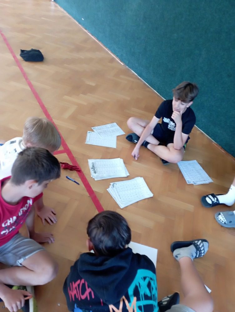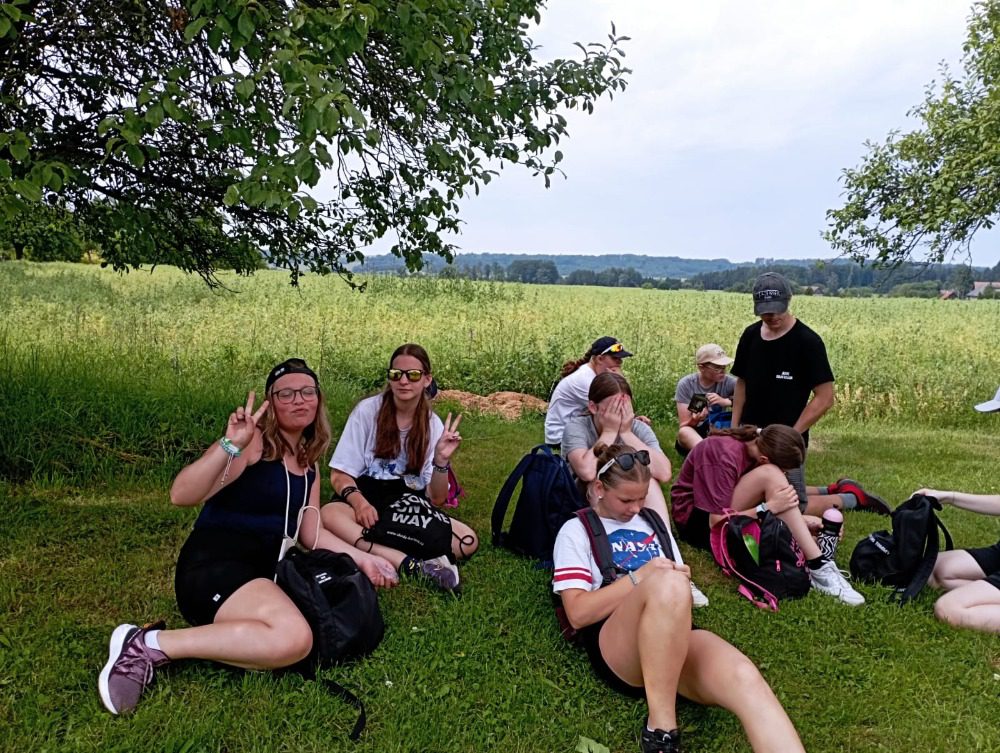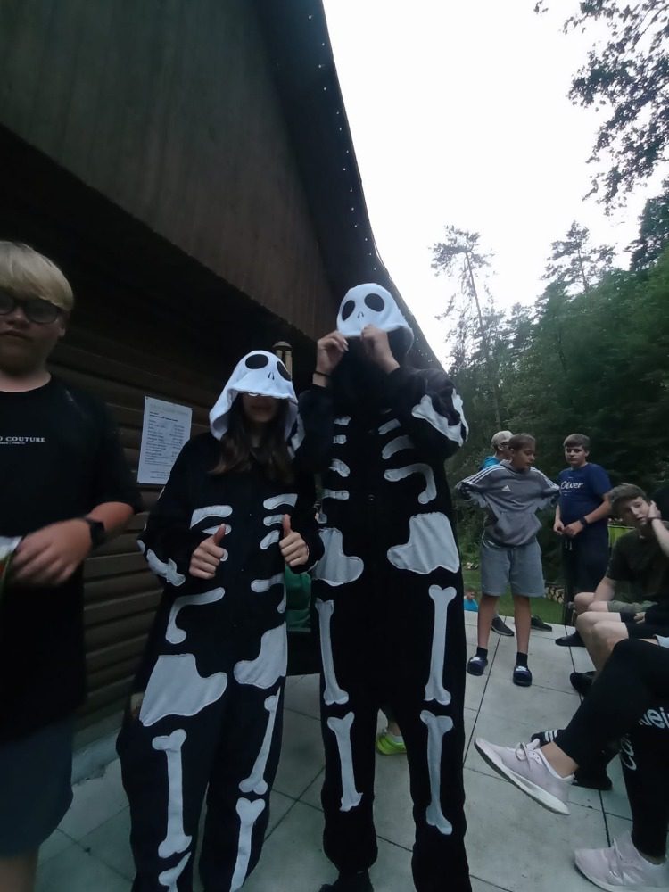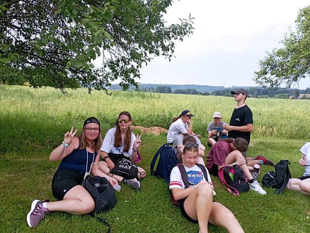 Ve středu nás čekal „třídeňák“. V 7:40 jsme se sešli na nádraží v Dolním Bousově, odtud jsme vyjeli do nedalekých Malechovic. Z Malechovic jsme došli na Nebákov, z Nebákova do Křenovského šenku, tam jsme objevili pole s hráškem, někteří si udělali zásobu na horší časy a hrášek tak jedli i v pátek 😊 Cesta dále pokračovala přes Troskovice na Vidlák, zde bohužel bylo zavřeno a tak nás čekala cesta až na Hrubou Skálu, zde byla hodinu a půl dlouhá pauza, kterou většina využila k objednání hranolek, smažáku, zmrzliny … Po naplnění bříšek jsme vyrazili podél starého hřbitova dolů na Želejovskou louku, k Věžáku a potom do Čertoryjí. Došlo na rozdělení chatek a po přivezení baťohů (děkujeme paní Zímové) se začalo vybalovat. Kemp už je starší, ale stačilo to. První večer jsme si opékali buřtíky. Jelikož nebyl v kempu silný signál, většina trávila hovorem se spolužáky, paní učitelkou a paní asistentkou, opravdu jsme se smáli od ucha k uchu, co všechno byli někteří schopni vymyslet. Pomocný dozor pomohl zajistit dcera paní učitelky Koubové, za co jí moc děkujeme. Ráno byl budíček o půl 8 a v osm hodin byla snídaně. Po snídani jsme se vydali na cestu na Vyskeř, někteří mírně protestovali, ještě asi cítili předchozí km, ale kupodivu po výšlapu na Vyskeř nikdo nechtěl dolů. Signál mobilu se opět objevil a hráčská duše zaplesala, prosili jsme ať můžeme zůstat, že oželíme i oběd, hlavně že budeme moci hrát. K obědu jsme měli bramborové knedlíky a luxusní gulášovku.