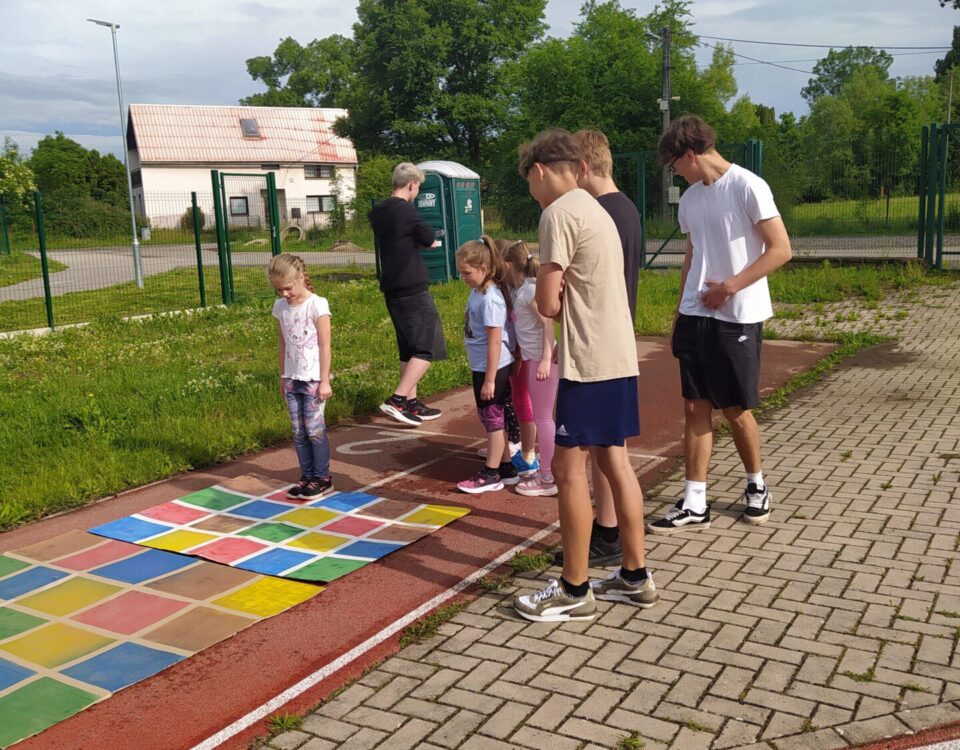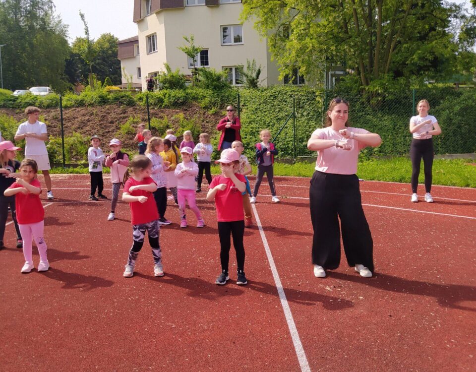 Dne 3.6. proběhla sportovní akce pro předškoláčky. Žáci 9.B měli připravená stanoviště, kde si mohli malí sportovci vyzkoušet různé dovednosti – skok do dálky, stavění komínu...