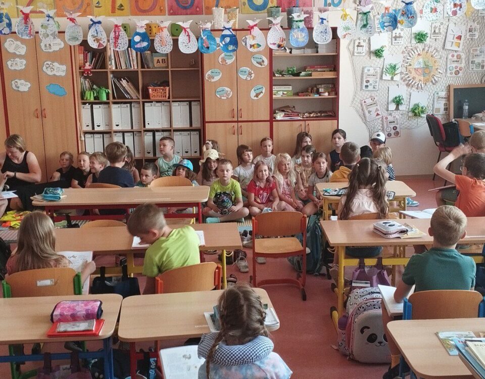 Ve středu 19.6.2024 navštívili předškoláčci z MŠ Sluníčka děti v 1.A. Prvňáčci předvedli předškolákům, jak umí číst a psát. Předškoláčci si vyzkoušeli sedět ve školní lavici...
